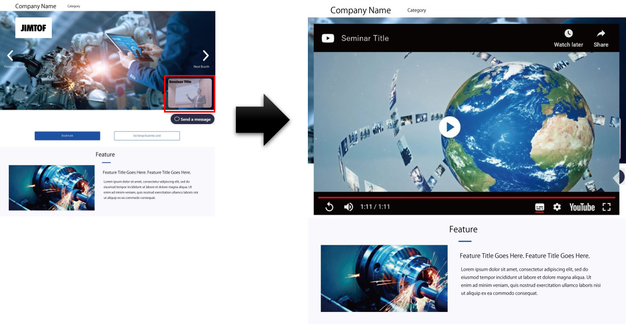 Video titles and thumbnails are displayed on the Exhibitor Booth Page.
